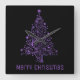 Relógio Quadrado Roxo Metálico Estrelas Árvore de Natal Preto Elega