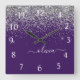 Relógio Quadrado Roxo Silver Glitter Girly Glam Monograma