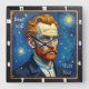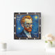 This image presents a vibrant and expressive artwork featuring a portrait of a man with fiery red hair and beard, and striking blue eyes. He is depicted wearing a dark blue coat over a white collared shirt. The background is a swirling, textured night sky filled with luminous yellow stars and celestial bodies, evoking a sense of cosmic wonder and artistic energy. The golden-yellow field below completes the setting. Overlaid on this captivating scene, white handwritten-style text reads "Dear GOD" in the upper left and "I trust You!" in the lower right. The piece beautifully combines a distinct artistic style with a profound message of faith.