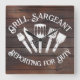 Relógio Quadrado Rustic "Grill Sargeant" - Gift de CHURRASCO Engraç