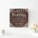 Madeira russa e luzes de corda piscam o relógio de parede de casamentos apresentando um fundo de madeira rústico com cordas de luz piscando e um lugar de estilo de vintage nos cantos inferiores. A palavra casamento é lançada em uma tipografia elegante, mas rústica, fazer que seja o nome perfeito ou presente para o seu casamento de vovô ou de campo.