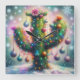 Relógio Quadrado Saguaro Cactus Whimsical Snowflakes de Natal