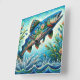 Relógio Quadrado Salmão Jumping Mosaico Floral Azul Pêssego Verde
