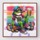 Relógio Quadrado Sapo pronto para festejar com uma bebida num skate