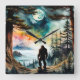 Relógio Quadrado Sasquatch em Ridge, olhando para o Oceano