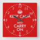 Esta engraçada modelo de relógio personalizável para as pessoas que estão atrasadas, tem o logotipo da coroa calma. Diz: "Fique calmo e continue." Você pode mudar qualquer uma das palavras no modelo e fazer seu próprio design. Há a cor de fundo vermelha tradicional, mas você pode mudar isso para qualquer cor se quiser personalizar. Há números brancos e pontos durante minutos. Você pode excluí-los se quiser deixar o vazio do relógio. Os números do relógio estão indo para trás. Em vez das 1 horas, são 11 horas, e assim por diante. Por isso, nunca mais terá de se apressar, uma vez que nunca se atrasará se usar este relógio para dizer o tempo! Este é um presente humorístico para alguém que está sempre atrasado, ou um amigo que para sempre o mantém esperando. Você pode mudar isso para o relógio grande ou pequeno redondo, se quiser. Mais guarde botões, itens e camisas calmos.