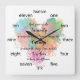 Crie um presente consciente para si mesmo ou para outro com este design de texto de oração da Serenidade num relógio de parede. Criada em tipografia elegante escrita sobreposta em um coração do estilo de aquarela digital abstrato pastel. As horas na face são indicadas em texto em vez de algarismos (ou seja, "doze")