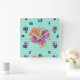 Relógio Quadrado Shabby Chic Aqua Rosas Rosa Floral Quarto Turquesa