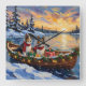 Relógio Quadrado Shetland Sheepdog Christmas Boat Holiday