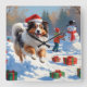 Relógio Quadrado Shetland Sheepdog Correndo Neve Com Chapéu De Nata