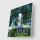 Souvenirs mostrando uma visão icônica do Merlion em Singapura.
