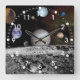 Planetas organizados em torno da área visível com uma paisagem lunar à frente