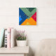 Vários quadrados bloqueados coloridos dispostos em camadas para criar um padrão geométrico.