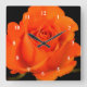 Relógio Quadrado Solteiro Laranja Rosa flor Acristalino
