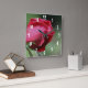 Belo rosebudo vermelho solteiro se curvando suavemente no relógio da parede natural da luz do sol. Fotografia de Susan. Clique em Personalizar para adicionar texto. Entre em contato comigo com quaisquer perguntas ou solicitações de design. Por favor, visite minha loja no Tesouro dos Olhos Sorrindo para ver mais cartões e presentes de design de flores, animais, natureza e arte digital para casa e escritório.