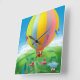 Artista: Paul Sharp | Um menino e uma menina voando num balão de ar quente sobre uma fazenda