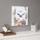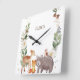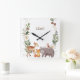O design apresenta um grupo de adoráveis amigos florestais (veados, ursos, guaxinim, raposa, coruja) e verde-aquarela.