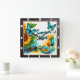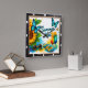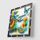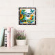 Este vibrante relógio de parede quadrada irradia "Summer Vibes" com seu design alegre com um girassol grande, duas borboletas azuis e acessórios essenciais de praia como óculos de sol e flip-flops coloridos. Duas bebidas tropicais refrescantes completam a cena, trazendo uma atmosfera lúdica e brilhante para qualquer decoração doméstica.