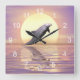 Uma cena ensolarada em 3d de um golfinho saltando da água em frente a um grande sol.