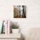 Uma fotografia modesta de raios solares numa floresta mística e encantada de faia foi atingida pela neblina, luz da manhã de ouro, no outono, na floresta mágica do cênico parque natural Siebengebirge, Renânia, Alemanha, este relógio de parede quadrada com placa de acesso é uma ideia presente para amantes do exterior e para os humores naturais. Foto de Katho Menden.