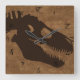 Ossos de dinossauro castanhos sobre fundo resplandecente fazem um relógio de parede super legal para qualquer aspirante a paleontólogo. Design by Night Owl's Menagerie, 2012.