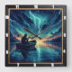 Esta trabalho de arte capta um momento sereno, mas dramático, de uma pessoa pescando em um lago, com uma tempestade épica de raios soprando no céu acima. A única textura de ferramentas do fundo e a paleta de cores impressionante criam uma poderosa experiência visual que combina tranquilidade com o caos.