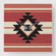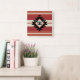 Teste padrão boémio étnico asteca com formas geométricas em cores vermelhas, alaranjadas, cinzentas e pretas em fundo listrado