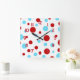 Relógio Quadrado Teste padrão de bolinhas branco vermelho de