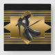 Relógio Quadrado Teste padrão & saltos altos Dourados pretos do