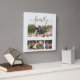 Relógio de fotos da família 4 com uma fonte engraçada e branca de script que diz, "família". Adicione suas fotos favoritas a este relógio para fazer uma bela manutenção que será preciosa nos próximos anos.