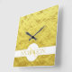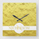 Relógio Quadrado Texto Dourado do Nome Personalizado do Monograma r