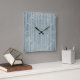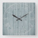 Relógio Quadrado Texto Leve Azul Rústico Bela Madeira