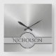 Relógio Quadrado Texto Metálico do Nome Personalizado do Monograma
