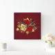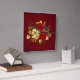 The composition of two artistically painted red roses and one golden rose, decorated with gold, jewel leaves on textured background.