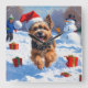 Relógio Quadrado Tibetano - Terrier correndo em neve com chapéu de