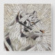 Relógio Quadrado Tigre branco - Arte Digital Mosaica de Vidro Estre