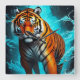 Relógio Quadrado Tigre Poderoso Caminhando Sobre A Água
