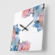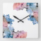 Relógio Quadrado Tinta de Abstrato moderna, tinta azul, rosa