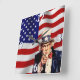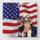 10,75" x 10,75" de relógio quadrado na parede de acrílico com uma imagem vintage dos anos 40 do Tio Sam na bandeira americana. Veja toda a coleção Patriótica de Relógio dos anos 40 no DECOR | Seção Relógios.