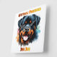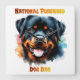 Uma ilustração vibrante celebrando o Dia Nacional do Cachorro Purebred, com um rottweiler alegre, mostrando suas marcações distintas e características expressivas em cores brilhantes.