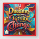 Um design vibrante com o texto "Dreams Ignite Change" em um admirável conjunto de cores, acentuado com toques de ouro que brilham como estrelas. A tipografia ousada é rodeada por abstrato e padrões giratórios, simbolizando a energia e o potencial da criatividade. Esta peça inspira os espectadores a abraçar suas aspirações e transformá-las em realidade."A Imagem Original foi gerada pelo Meta AI. A IA gerou trabalho de arte. Licenciado sob CC BY-SA 4.0.