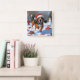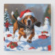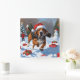 Relógio Quadrado Tremendo Walker Coonhound Snow com Chapéu de Natal