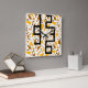 Relógio Quadrado Triângulos castanhos amarelos sobre fundo retroati