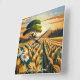 Entra no mundo idílico do Whispering Wheat, onde a paisagem beijada pelo sol te chama para abraçar os sussurros da natureza. Essa obra retrata uma cena pitoresca de um campo de trigo balançando na brisa, enquanto uma majestosa árvore fornece sombra e consolo, harmoniosamente complementada pela presença de três margaridas, uma ode ao delicado equilíbrio de vida e crescimento.