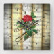 Relógio Quadrado Trombone & Rosa ~ Folhas Roladas