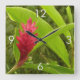 Relógio Quadrado Tropical de Flor Vermelho Ginger (Alpinia)