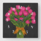 Relógio Quadrado Tulipas Rosa Chalkboard