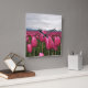 Relógio Quadrado Tulipas Rosa Flores Acrílicas Muralha