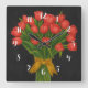 Relógio Quadrado Tulipas Vermelhas Chalkboard