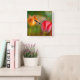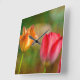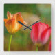 Relógio Quadrado Tulipas vermelhas e amarelas sobre fundo texturiza